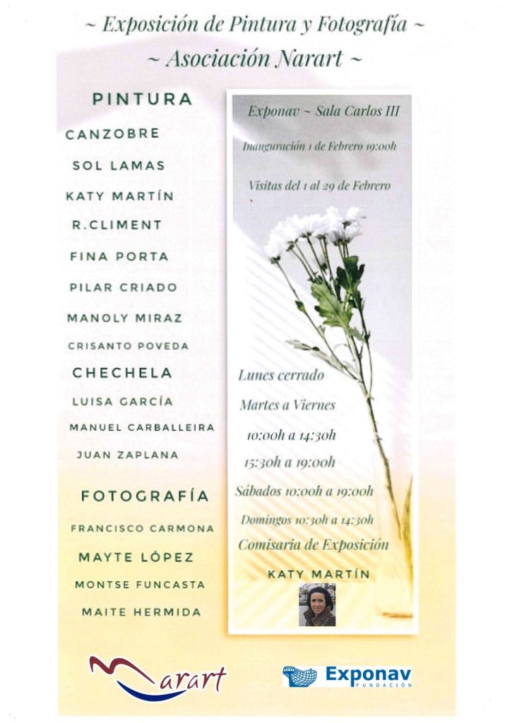 En esta ocasión se expondrán alrededor de 20 pinturas y fotografías de varios artistas, en esta ya tradicional colaboración entre NARART y la Fundación Exponav.