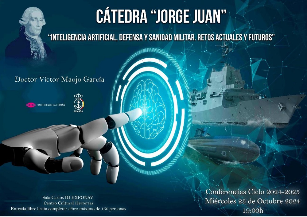 En la Sala Carlos III de la Fundación Exponav – Centro Cultural Herrerías en Ferrol, el Doctor Víctor Maojo García, dentro del Ciclo de Conferencias 2024-2025, impartirá en el ámbito de la Cátedra Jorge Juan, la conferencia titulada: Inteligencia Artificial, Defensa y Sanidad Militar. Retos actuales y futuros.