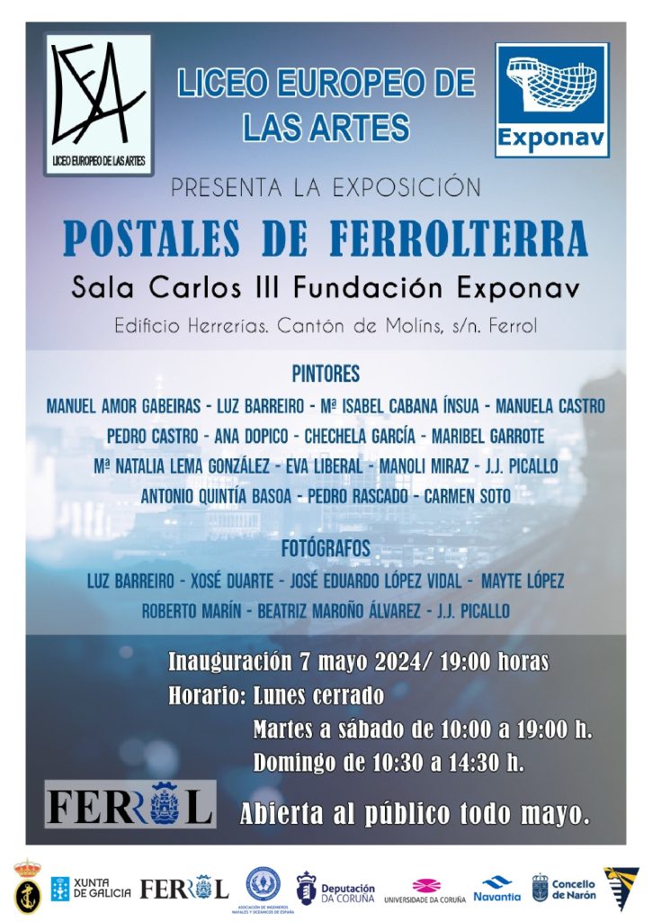 La Fundación Exponav, invita a la inauguración de dicha exposición organizada por la Sociedad Artística Ferrolana S.A.F..
