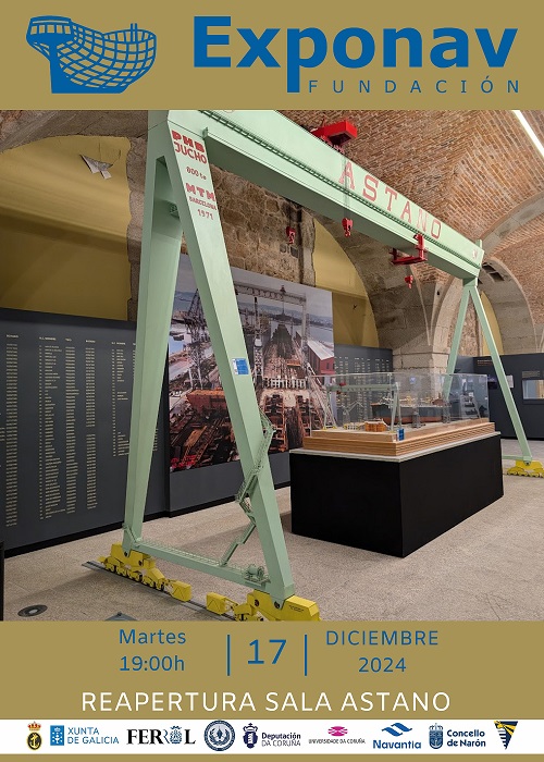 El próximo martes día 17 de diciembre de 2024 a las 19:00 horas, en la Fundación Exponav, en el Edificio de Herrerías, se procederá por el Museo de la Construcción Naval, a la reapertura de la Sala Astano.
